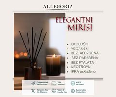 Vjerujemo da sve što nas okružuje utječe na naše misli , naše tijelo i naše zdravlje. Zato nastojimo da svi naši proizvodi budu potpuno prirodni i ekološki, nimalo štetni za Vaše zdravlje i okoliš. Allegoria modelirane svijeće: * ekološke su, netoksične i eco friendly * veganske i biorazgradive * gore gotovo dvostruko duže od klasičnih parafinskih svijeća * sjajno mirišu u prostoru * utječu na bolje raspoloženje * smanjuju razinu stresa * dodaju dašak estetike interijerima * čine Vaše prostore ugodnijima * kreiraju sjajnu atmosferu * pomažu da ljepše spavate.....